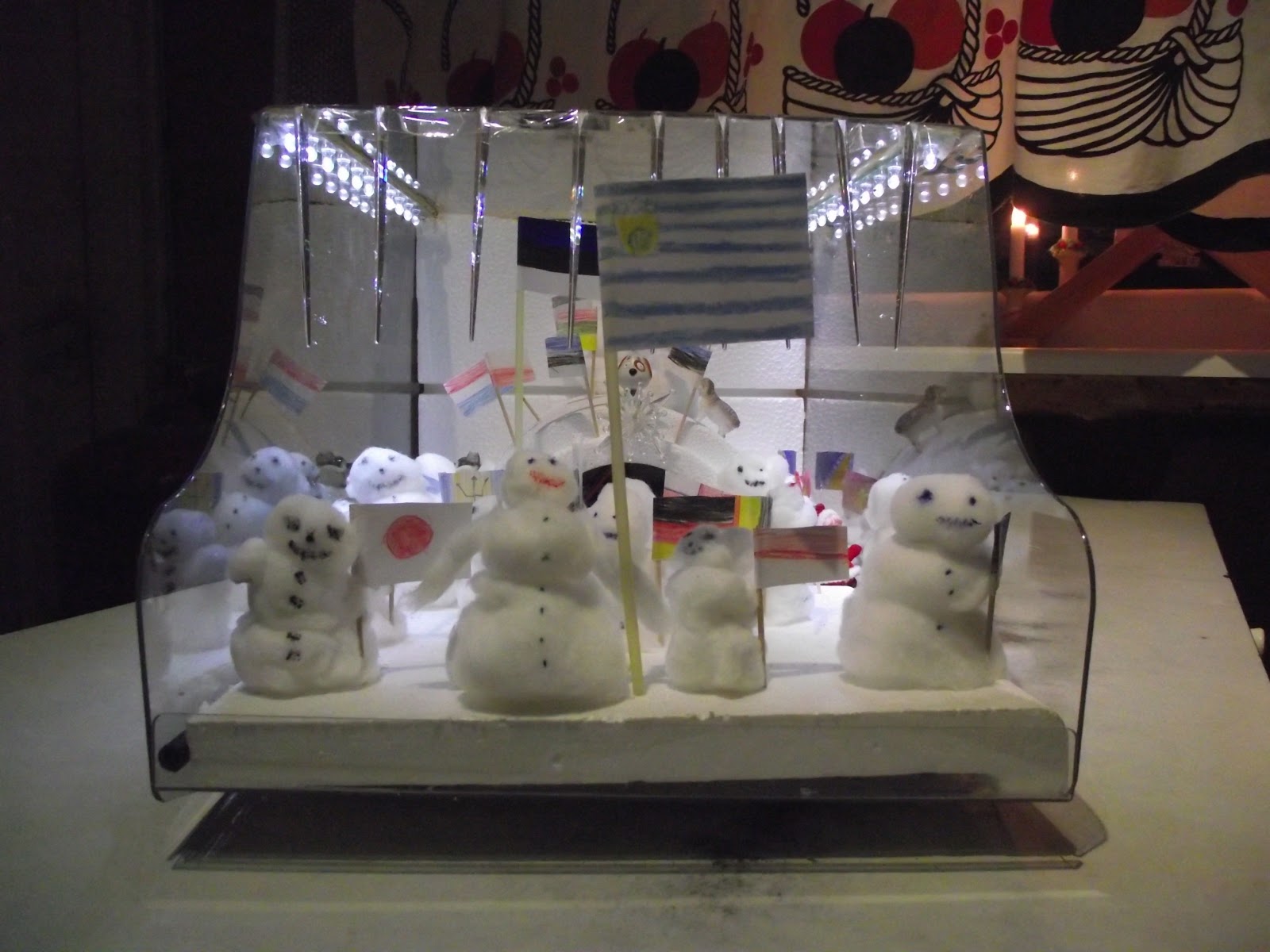 Selle aasta jõulukohviku teema on "Lumememmede paraad". Meisterdused tulid täna ära viia. Selline on siis meie meisterdus näituse jaoks. Tegime ühe asja kahepeale.